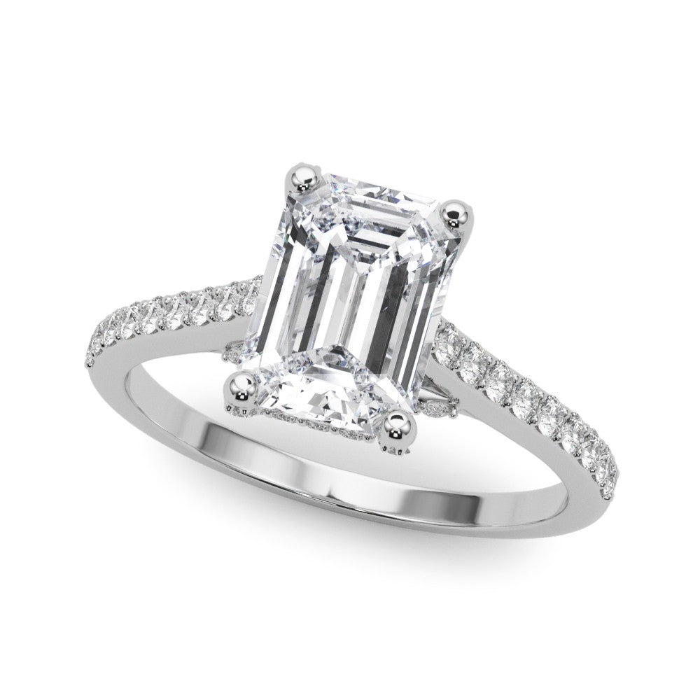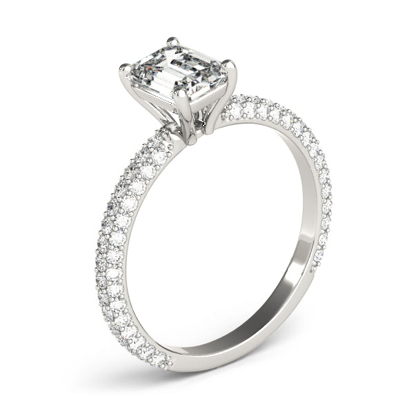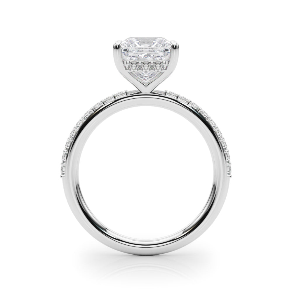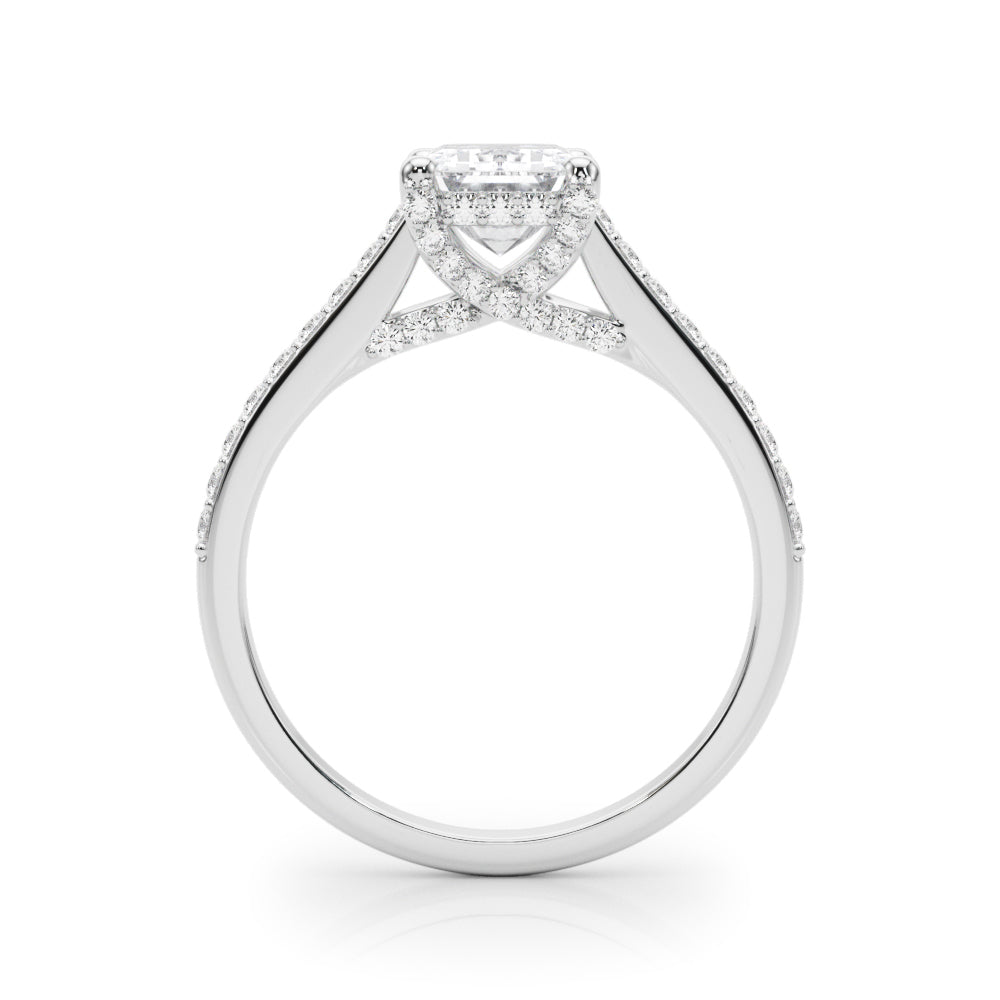 This 18K white Gold product can accommodate a Cushion cut diamond . Available in 18K White, Yellow and Rose Gold, as well as Platinum. Matching Wedding Band sold separately.