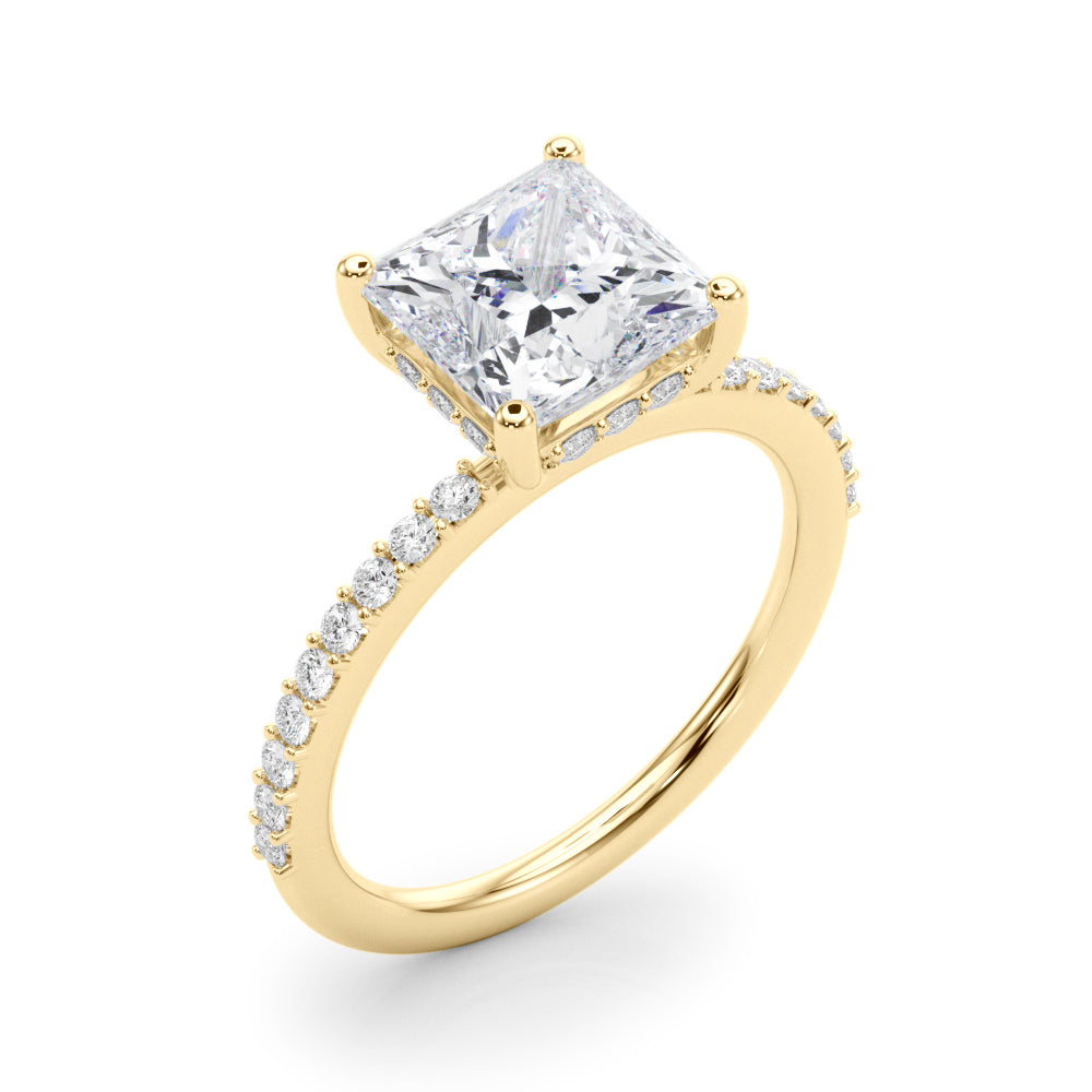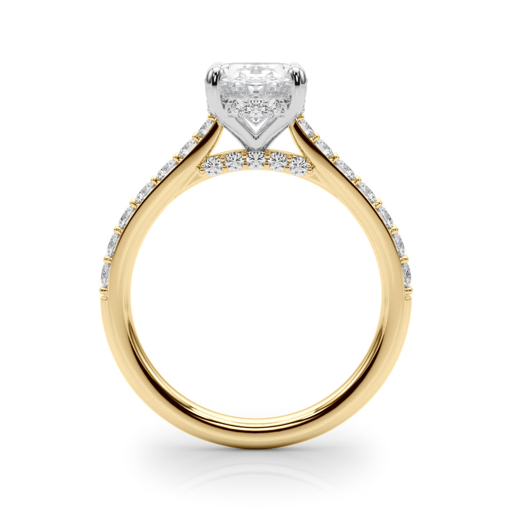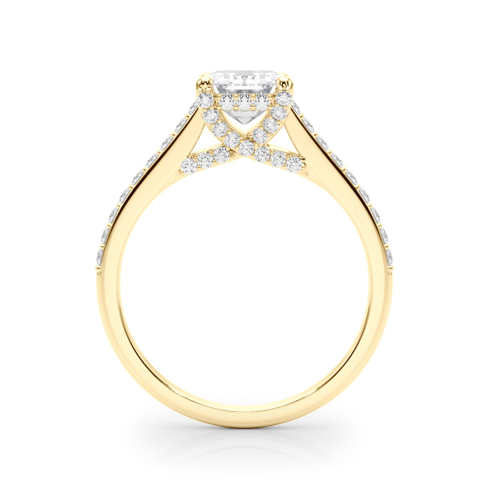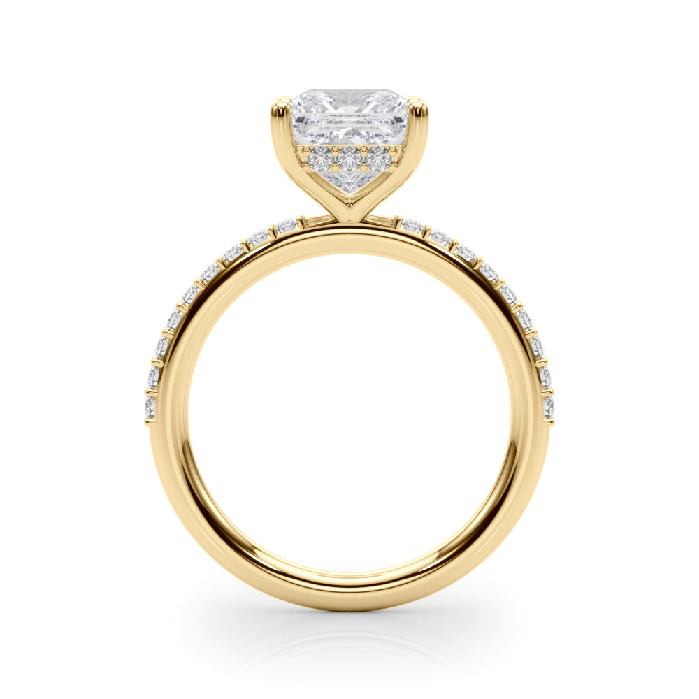 This 18K white Gold product can accommodate a Cushion cut diamond . Available in 18K White, Yellow and Rose Gold, as well as Platinum. Matching Wedding Band sold separately.