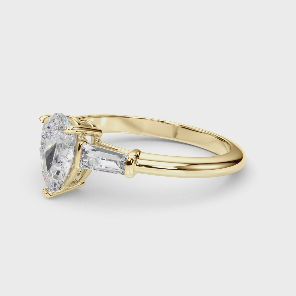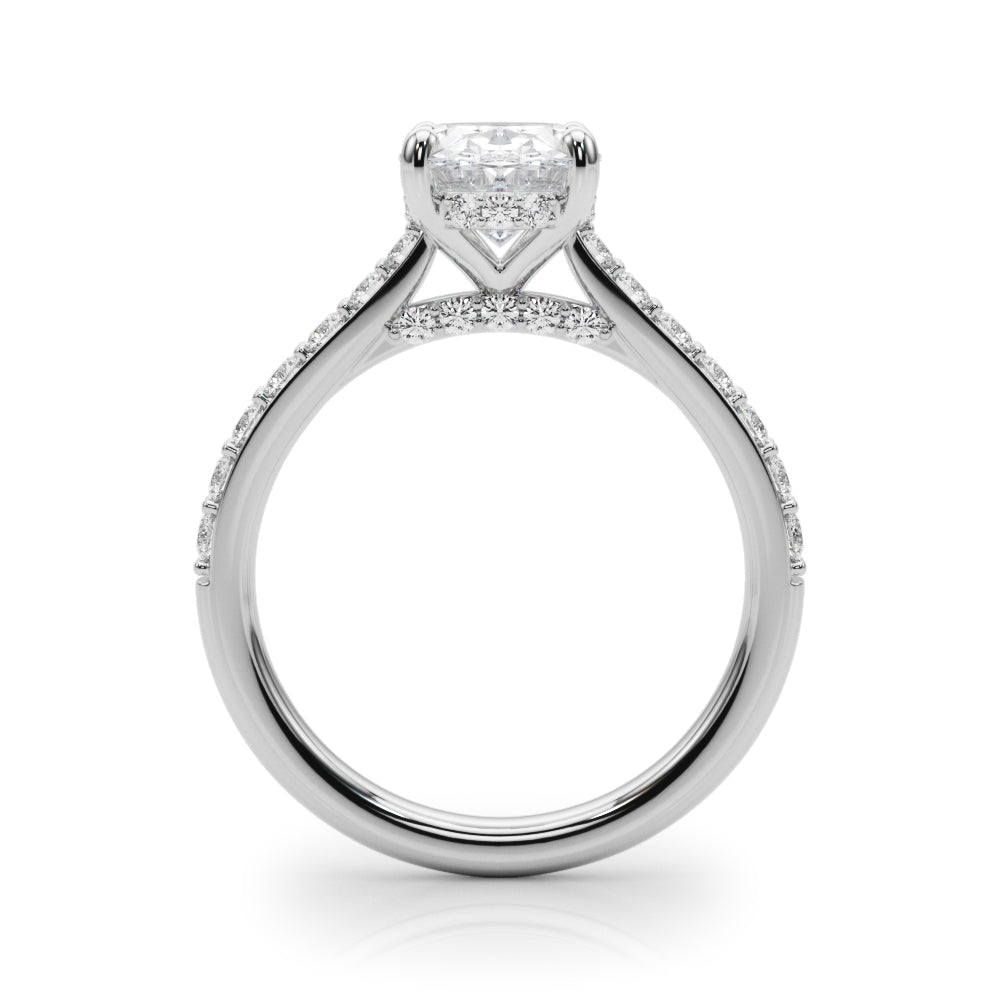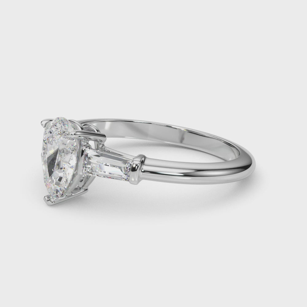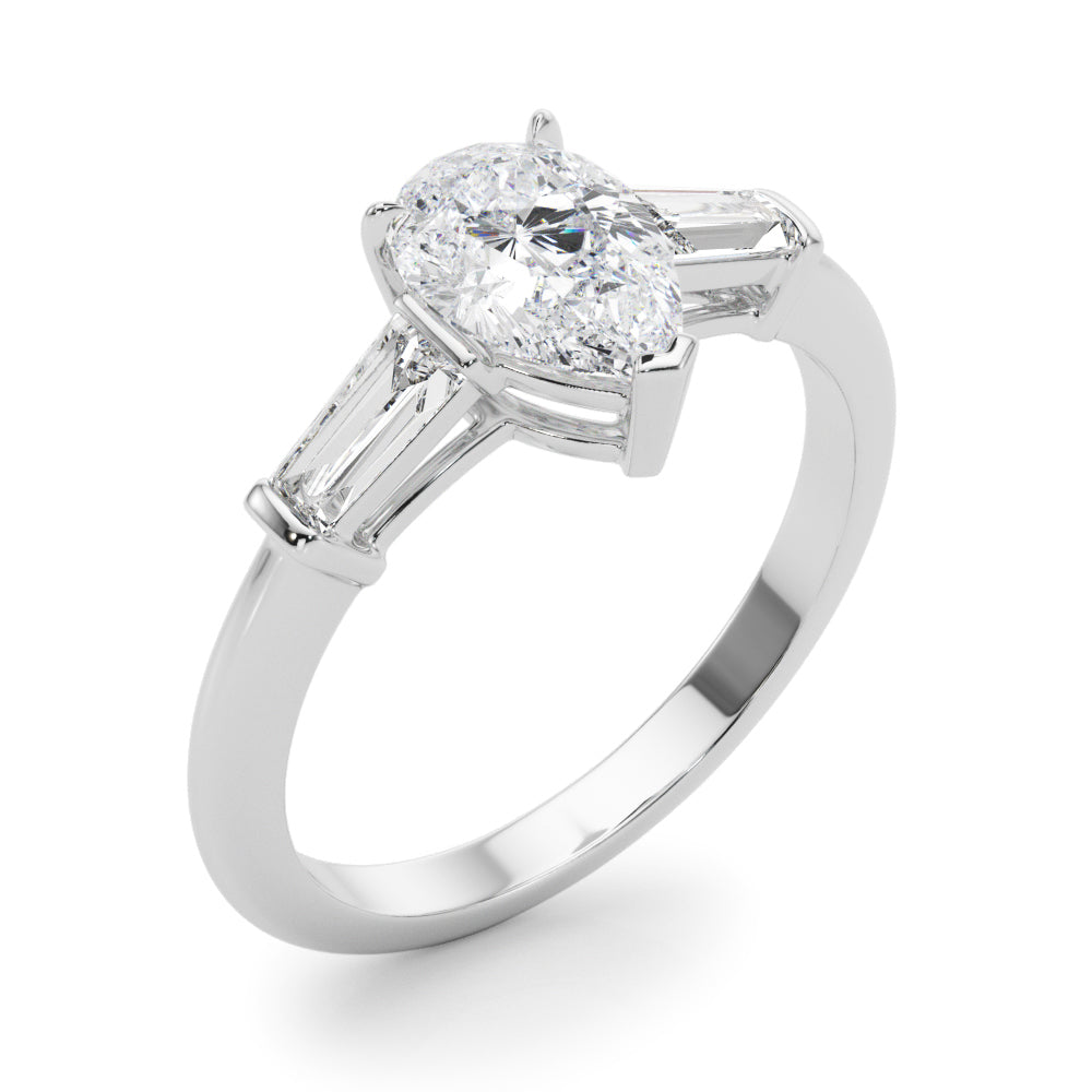 This 18K white Gold product can accommodate a Pear shape Diamond.